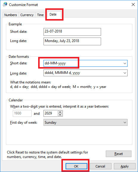 - Goto Date tab, manual type in dd-MM-yyyy then click